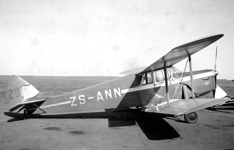 | DH.87B Hornet Moth | 8142 | ZS-ANN | DH.87B Hornet Moth c/n 8142 [CofA 6095 issued 19.10.37 to DH South Africa]. Regd 12.2.38. Impressed as SAAF 1540 3.40. Operated by 1 EFTS .41. To 1 AS [4.41-9.41]. To 6 AS 2.10.41. To 4 AD. To 1 AS 17.3.42. To 6 AS. To 4 AD 23.5.44. To 6 AS 19.10.44. |