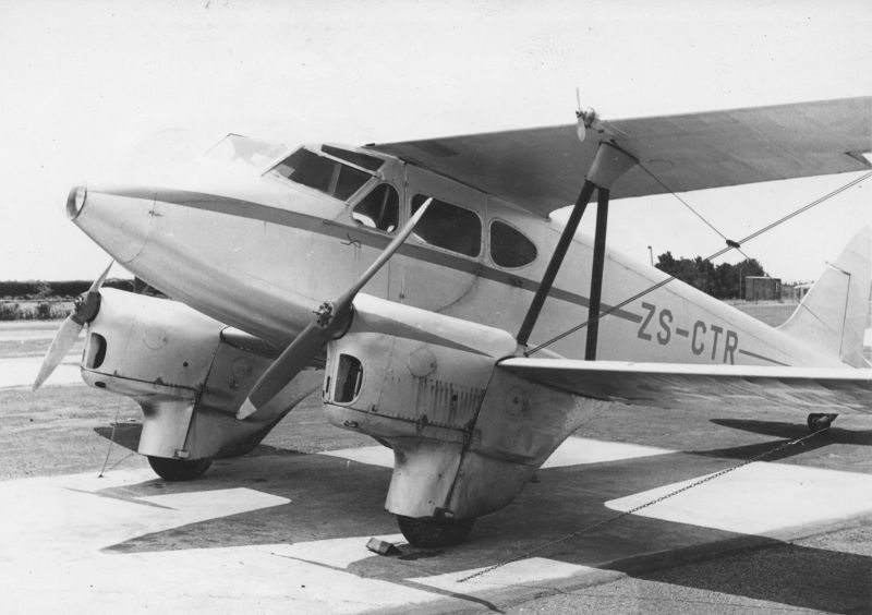 | DH.90 Dragonfly | 7526 | ZS-CTR | G-AEDU N190DH CR-AAB DETA Mocambique 'Beira' 14 October 1936 Sold to South Africa September 1961 |